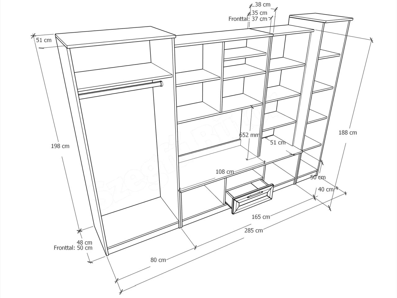 Szélesség: 285 cm