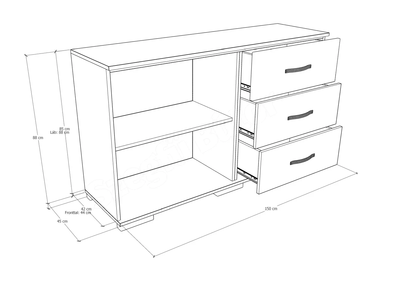 Basic Olivia komód BL méretrajz
