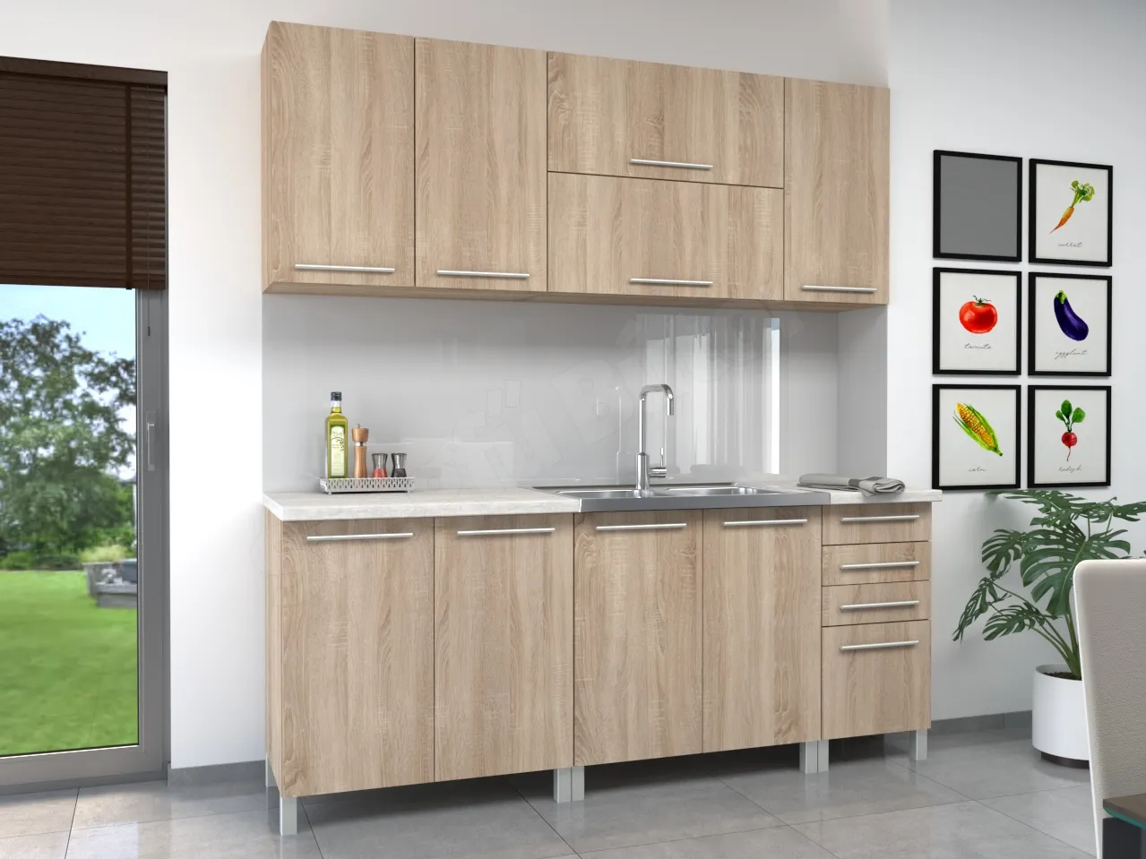 Basic Retró konyhabútor 200 x 72,5 cm tele zárt felsőkkel (SZ)