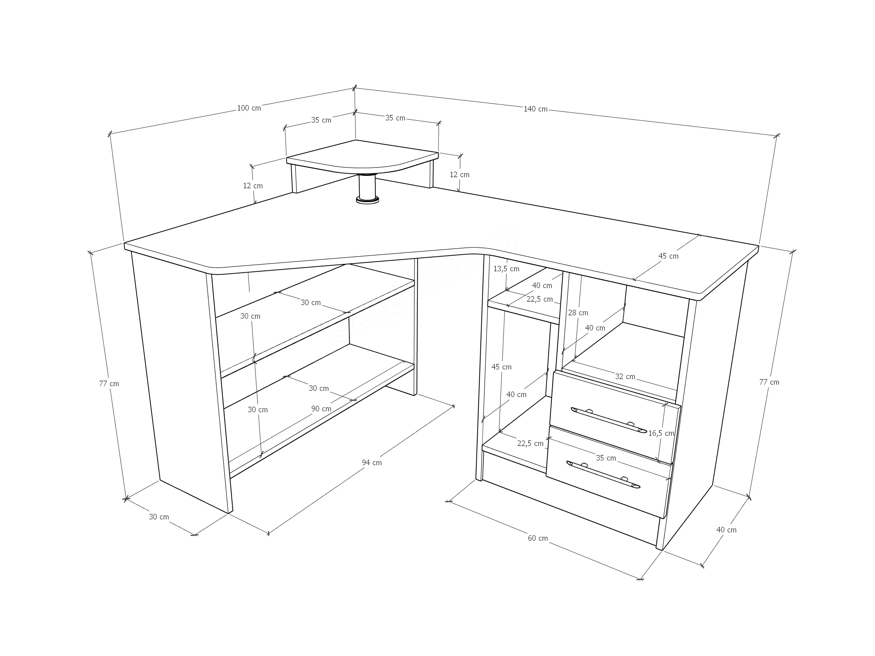 CT 33 Számítógépasztal BL méretrajz