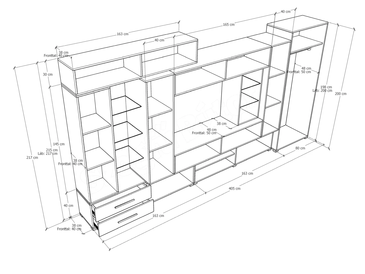 Szélesség: 405 cm